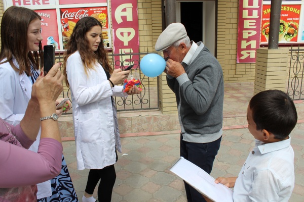 На улицах нашего города прохожим предлагали проверить работу легких с помощью надуванием