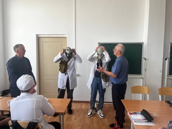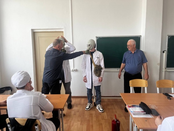 На уроке присутствовали Гасанов Муса Джабраилович-главный специалист МКО г.Хасавюрт, Насырхаев Зеримсултан Батырсултанович-заместитель директора по безопасности Колледжа, Вагабов Абдулнасыр Асадуллаевич- преподаватель ОБЖ Колледжа.