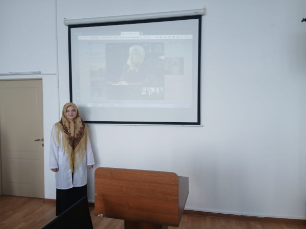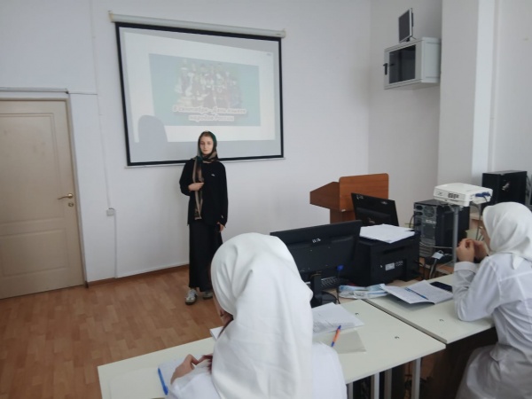 Далее, проитали стихи на родных языках студентки 1 курса: Мустапаева Дженнет,, Хуцуева Амина, Атаева Алжанат .