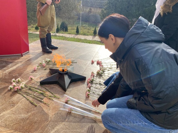 Студенты Колледжа во главе с заместителем директора по воспитательной работе Аджаматовой Э.А. возложили цветы к Вечному огню на Холме боевой славы.