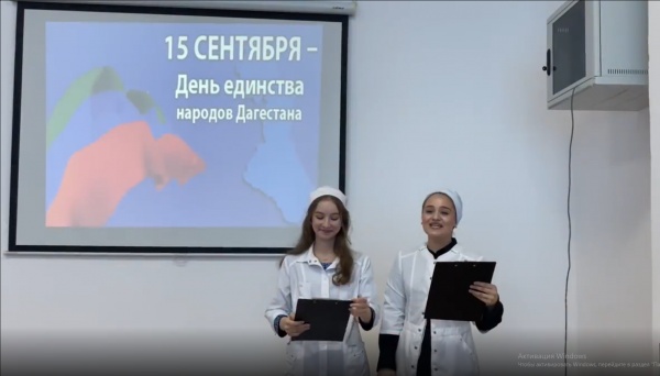 15 сентября весь Дагестан отмечает праздник «День единства народов Дагестана». Этому празднику был посвящен открытый классный час студентов 3-го курса отделения «Акушерское дело». Цель: воспитание патриотизма, гражданственности, чувства гордости и уважения к историческому прошлому Дагестана.