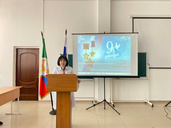 Цель урока: воспитание патриотизма, гражданственности, чувства гордости и уважения к историческому прошлому Родины. Студенты рассказали об истории присвоения государственных наград в России, о подвигах дагестанцев Героев Советского Союза, о славных ратных традициях наших Вооруженных сил.