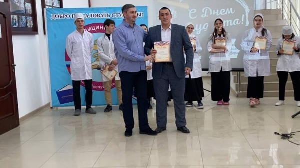 Генеральный директора колледжа кандидат исторических наук, Почетный работник общего образования Российской Федерации, Магомедова Разия Шамшединовна поздравила студентов с праздником и вручила Почетные грамоты отличникам учебы. Исполнительный директор Арсланханов Эльмурза Аймурзаевич наградил лучших студентов в других номинациях. Поздравляем всех студентов с праздником желаем успехов в учебе, здоровья и счастья!
