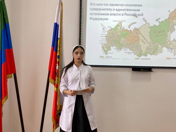 Куратор курса Исаева Зульфия Курашевна рассказала о том, что 12 декабря - одна из значимых памятных дат российского государства. Конституция - основной закон страны, который закрепил охраняемые государством права, свободы и обязанности человека и гражданина.