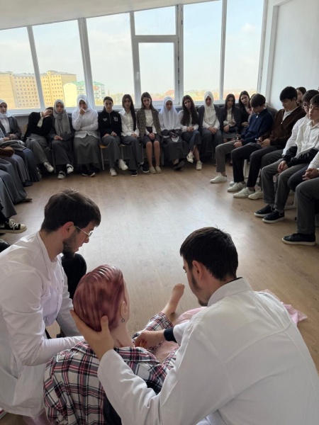 06.11.2025г.в ПОАНО "Медицинский колледж "г.Хасавюрт под руководством преподавателя Расуловой Зайнаб Набиевны прошел мастер -класс по оказанию первой медицинской помощи, для школьников 10-11 классов гимназии им М.Горького.