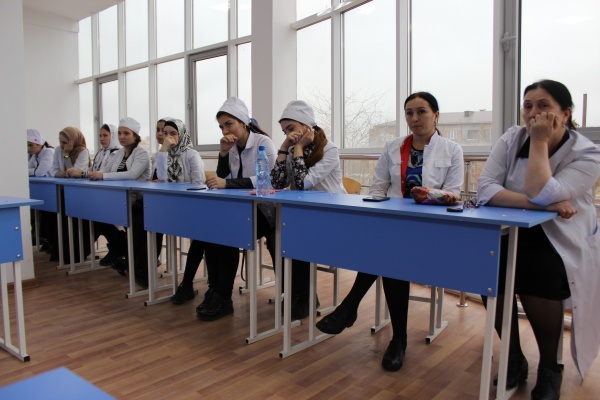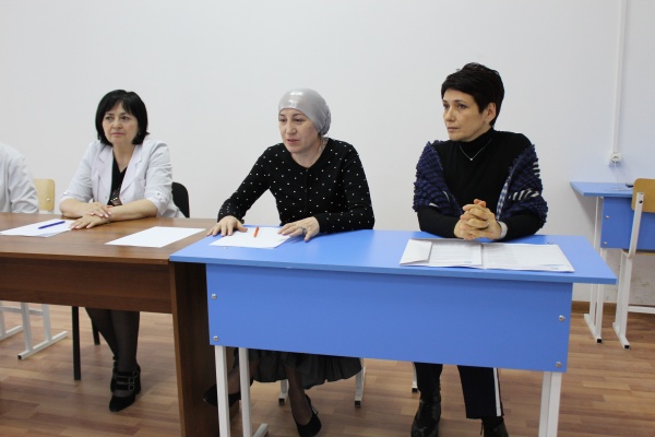 13 ноября 2019г. в Медицинском колледже г. Хасавюрт состоялась встреча организованная Союзом женщин Дагестана, в целях реализации на территории региона национальных проектов, в частности проекта «Домография».Разия Шамшединовна - директор колледжа представила студентам гостей, представителей социально- психологической службы «Генезис» Рудакову Ирину Владимировну и Канаеву Хадижат Джамалдиновну. Основным вопросом встречи был проект «Семейная динамика в Дагестане».