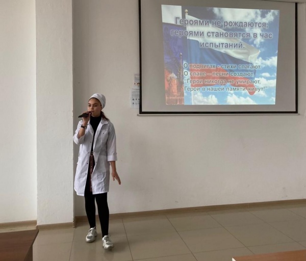 В Медицинском колледже ПОАНО был проведен открытый урок «Чествуем героев сегодня, гордимся ими всегда!». Цель урока: воспитание патриотизма, гражданственности, чувства гордости и уважения к историческому прошлому Родины. Студенты рассказали об истории присвоения государственных наград в России, о подвигах дагестанцев Героев Советского Союза, о славных ратных традициях наших Вооруженных сил.