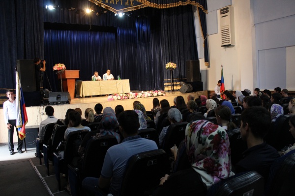Глава МО г. Хасавюрт Окмазов Зайнудин Дадабегович поздравил преподавателей и студентов с началом нового учебного года, вручил грамоты отличникам учебы и активистам, выразил слова благодарности студентам помогавшим в благоустройстве нового здания Колледжа.
