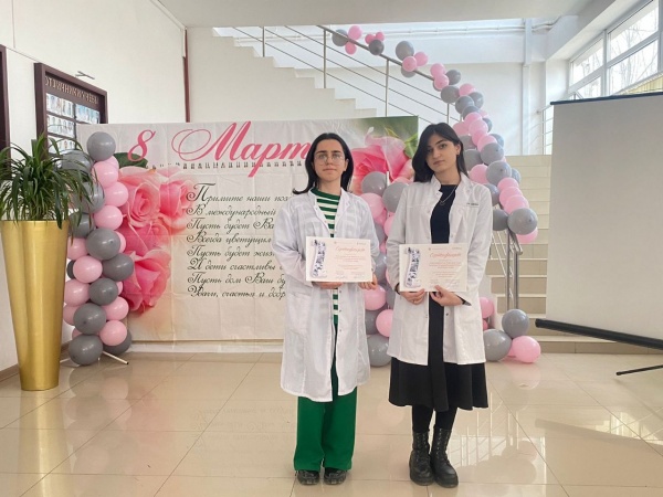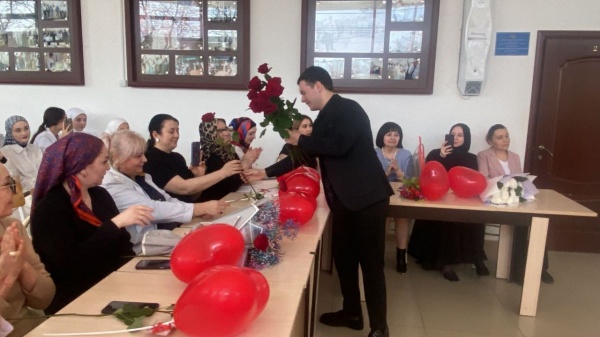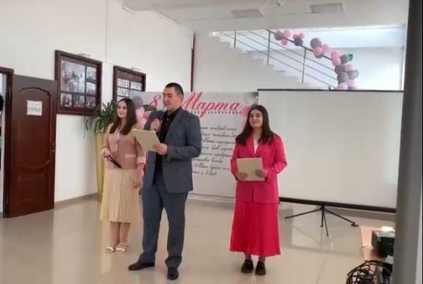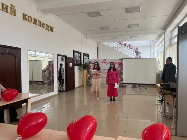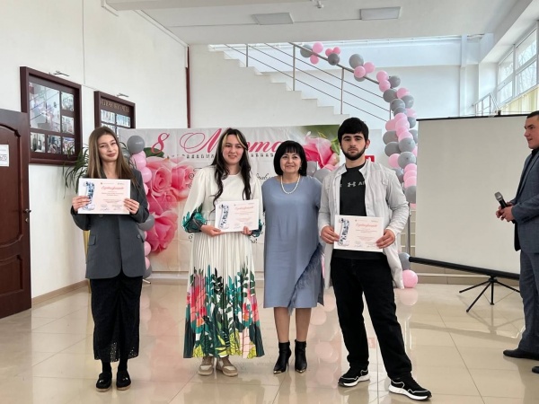 Генеральный директор Р.Ш.Магомедова поздравила коллег и студентов с наступающим весенним праздником. В торжественной обстановке Разия Шамшединовна вручила благодарственные письма педагогам, подготовившим студентов для участия во Всероссийском творческом конкурсе "Пробуждая сердца" и сертификаты студентам-участникам Всероссийского творческого конкурса.