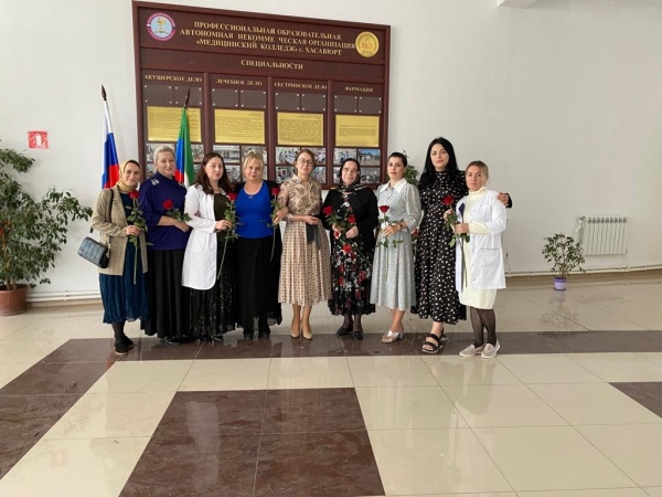 При входе в Колледж студенты поздравляли преподавателей с профессиональным праздником, встречали с цветами и теплыми словами.