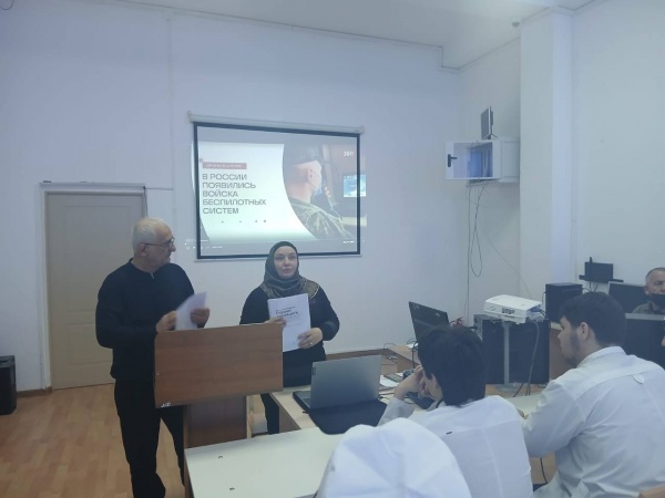 11 марта 2026г.в ПОАНО "Медицинский колледж "г.Хасавюрт состоялось информационное собрание для студентов выпускных курсов . Тема встречи — возможность прохождения военной службы по контракту в войсках беспилотных систем Вооружённых Сил РФ.