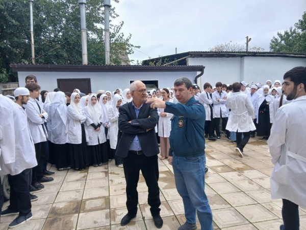21.10.2025г.в ПОАНО "Медицинский колледж " г.Хасавюрт провели объективные тренировки "Действие руководства,педагогического коллектива и студентов при возникновении ЧС техногенного характера (пожар)и угроза возникновения террористических актов.