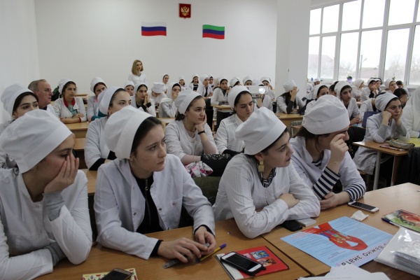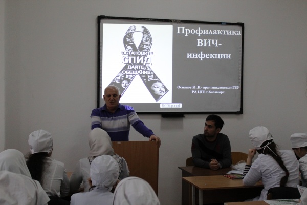 В Медицинском колледже г. Хасавюрт 1 декабря 2018 г., прошла встреча студентов с представителями хасавюртовской центральной городской больницы по профилактике инфекционных заболеваний и СПИДа, приуроченная к Всемирному дню борьбы со СПИДом, который отмечается ежегодно 1 декабря.