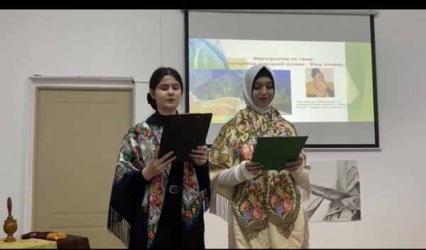 В ПОАНО Медицинский колледж было проведено открытое внеклассное мероприятие «Жемчужина народной поэзии – Фазу Алиева». В этом году в России отмечают 90-летие со дня рождения знаменитой на весь мир поэтессы Фазу Алиевой.
