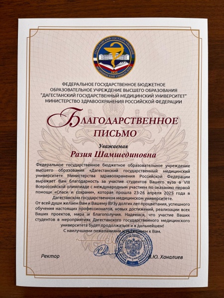Всероссийская олимпиада с международным участием по оказанию первой помощи «Спаси и сохрани» уже стала традиционной для Дагестанского государственного медицинского университета – она проводится в стенах вуза уже в шестой раз. География ее участников с каждым разом расширяется и на олимпиаду приезжают наши коллеги из различных регионов Российской Федерации и представители зарубежных вузов. В этом году участие в олимпиаде приняла 25 команд вузов и медицинских колледжей из Астрахани, Омска, Рязани, Тулы, Волгограда, Саратова, Ставрополя, Кисловодска, Черкесска, Буйнакска, Хасавюрта, Дербента и Махачкалы. Участие приняла и зарубежная команда из Витебска (Белоруссия).