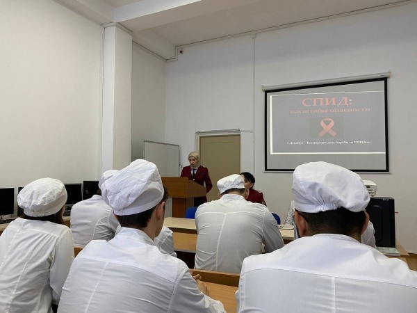 В ПОАНО «Медицинский колледж» г. Хасавюрт была проведена встреча с работниками территориального отдела Роспотребнадзора: заместителем начальника Дарцаевой Рукият Султановной и главным специалистом Кочмасовой З. К. Встреча была посвящена Всемирному Дню борьбы со СПИДом, который проводится 1 декабря. Цель и задачи — пропаганда здорового и безопасного образа жизни.