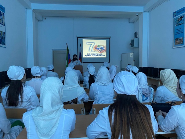 7 апреля 2023 года преподавателями нашего колледжа проведена беседа со студентами на тему «Здоровый образ жизни». Они рассказали обучающихся как правильно вести активный образ жизни: что сидячая работа должна компенсироваться физическими нагрузками после трудового дня не менее 150 минут умеренной или 75 минут интенсивной физической нагрузки в неделю;